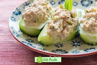 - Divide la ensalada de pepino en platos individuales y coloca encima un filete de atún cocido.