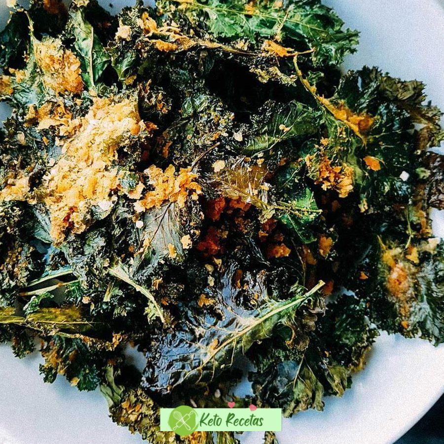 La receta es de la dieta keto o cetogénica, es una opción saludable y deliciosa para disfrutar de un snack crujiente y bajo en carbohidratos. Los chips de kale al horno con queso parmesano son una excelente manera de satisfacer tus antojos sin romper tu dieta.