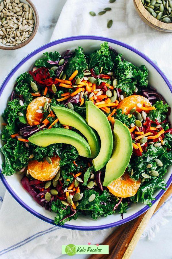 Esta receta de ensalada de kale con aguacate y nueces es perfecta para aquellos que siguen una dieta keto. El kale, también conocido como col rizada, es una verdura rica en nutrientes y bajo en carbohidratos, lo que la convierte en una excelente opción para una dieta baja en carbohidratos. Además, el aguacate y las nueces añaden grasas saludables y un delicioso sabor a la ensalada. ¡Vamos a cocinar!